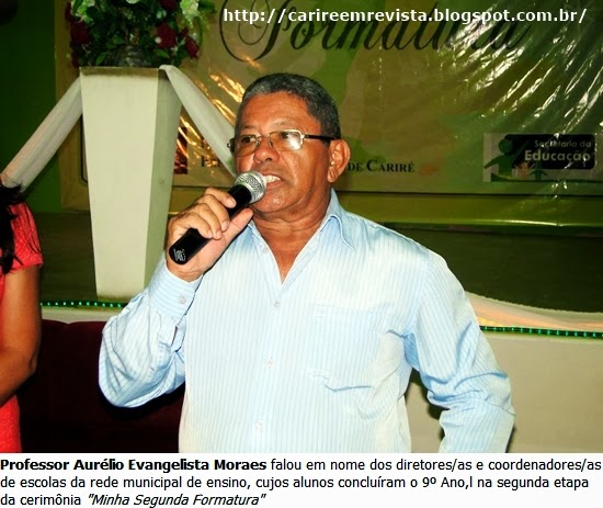 Por ocasião da abertura da programação festiva, o professor Aurélio Evangelista Moraes, diretor da Escola Cefisa Aguiar, esteve fazendo um pronunciamento em nome de todos os diretores e coordenadores das escolas municipais Domingos Ribeiro de Paiva e EscolaCefisa Aguiar.